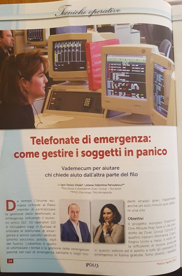 Durante questo corso Igor Vitale e gli esperti della Squadra di Zivac Leliana Valentina Parvulescu e Cerasela Zizi Merlan, hanno presentato il progetto Europeo “One Minute May Save a Life”. Questo progetto aveva l’obiettivo di identificare le false telefonate di emergenza nei casi di omicidio. Si tratta di un metodo che può distinguere i killer dai chiamanti innocenti.